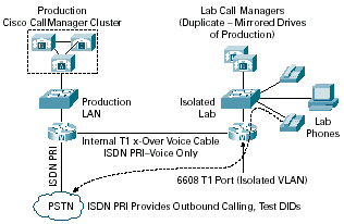 GTAA必須在一個(gè)與實(shí)際工作網(wǎng)絡(luò)非常接近的模擬環(huán)境中測(cè)試新的功能和補(bǔ)丁。Call Manager的復(fù)制版本意味著該網(wǎng)絡(luò)必須被隔離開(kāi),以避免機(jī)器名和IP地址的沖突。但是,GTAA需要能夠在無(wú)需購(gòu)買額外的電信公司電路的情況下,向外呼叫PSTN或者航空公司的PBX。下面顯示了如何在不提高每月成本的情況下,實(shí)現(xiàn)這個(gè)目標(biāo),從而為實(shí)驗(yàn)室提供最大限度的功能。