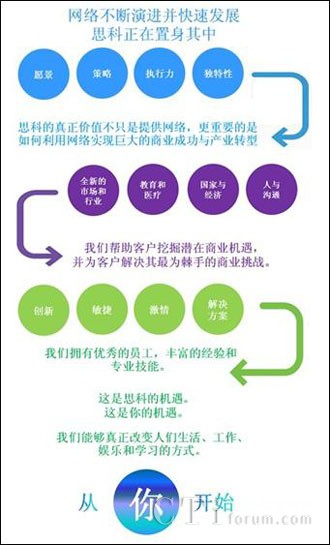 擁有創(chuàng)新智能化的網(wǎng)絡(luò)已經(jīng)成為企業(yè)尋求成功的關(guān)鍵。對網(wǎng)絡(luò)的投入能夠使這些企業(yè)在業(yè)務(wù)發(fā)展過程中具備更大的競爭優(yōu)勢。他們意識到網(wǎng)絡(luò)能夠為其業(yè)務(wù)發(fā)展帶來顯著優(yōu)勢,并且使他們在一個視頻無處不在、移動性和安全性日顯關(guān)鍵的市場中處于領(lǐng)先地位。思科不但在通過其先進(jìn)的創(chuàng)新技術(shù)和最佳實踐經(jīng)驗來幫助客戶實現(xiàn)商業(yè)成功,同時還在推動客戶利用其智能化網(wǎng)絡(luò)進(jìn)行創(chuàng)新和發(fā)掘潛在商機(jī)。智能網(wǎng)絡(luò)將能夠成為企業(yè)的戰(zhàn)略資產(chǎn),更重要的是它能使IT成為企業(yè)的價值創(chuàng)造中心。