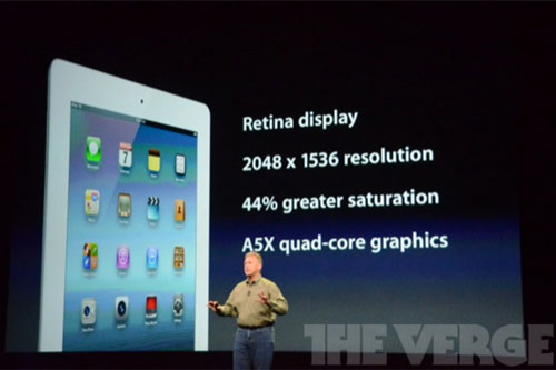 新一代iPad從外觀上與二代iPad并無(wú)太大區(qū)別,仍然保留Home鍵,其中屏幕采用分辨率為2048*1536像素的視網(wǎng)膜屏,其是iPad二代1024*768像素的分辨率四倍,支持1080p影片。