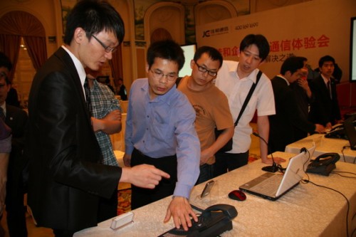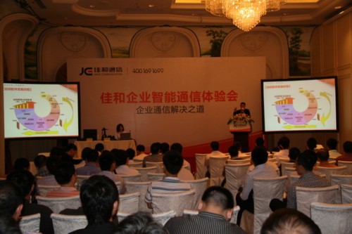 CTI論壇(ctiforum)4月25日消息(記者 潘婷婷): 廣東佳和通信技術(shù)有限公司主辦的首場企業(yè)智能通信體驗會,于2011年4月13日在廣州富力麗思卡爾頓酒店隆重召開,并取得圓滿成功。此次體驗會來自佳和通信的負(fù)責(zé)人和業(yè)內(nèi)專家就佳和企業(yè)智能通信平臺的應(yīng)用以及協(xié)同辦公的發(fā)展趨勢發(fā)表了主題演講,為所有到場的100多位來賓做了詳實的介紹。同時展示了佳和“睿”系列的7個應(yīng)用解決方案,并對拳頭產(chǎn)品——智能IP話機(jī)T600、移動分機(jī)M600、個人助理軟件IPA PRO等進(jìn)行了現(xiàn)場演示和互動,其目的在于使現(xiàn)場嘉賓充分感受企業(yè)智能通信的價值和魅力,同時親身體驗到如何在在加速辦公自動化的同時提高企業(yè)效率、節(jié)約成本。