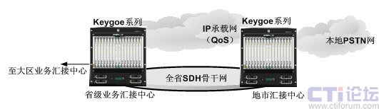 利用東進Keygoe系列多媒體交換機的多網絡融合性能通過電信優(yōu)質的IP專網將位于不同省市的通信外包大平臺連接起來,實現(xiàn)異地平臺的IP互聯(lián),建立跨區(qū)域的分布式的統(tǒng)一大平臺,為連鎖企業(yè)提供全國和全省統(tǒng)一電話號碼和其他的跨地區(qū)應用提供了基礎。