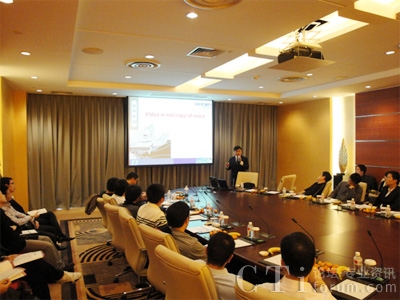 東進Keygoe產(chǎn)品經(jīng)理劉駿先生是本次活動當之無愧的頂梁柱,活躍在沙龍活動的每一站。他對3G通信市場進行了深入淺出的分析,借鑒國外成功的案例經(jīng)驗,并對中國可能的熱點業(yè)務(wù)做出東進的預(yù)測,即在將來,手機上網(wǎng),視頻點播,定位服務(wù)以及下載服務(wù)可能成為熱點,同時,重點列舉和分析了東進在3G業(yè)務(wù)應(yīng)用的探索成果和經(jīng)驗。會中對將視頻功能嵌入到“3G總機一號通”這類應(yīng)用的描述,非常引人入勝,尤其讓人注意的是,他認為3G視頻在將來不會作為一個單獨的業(yè)務(wù)而存在,而公眾業(yè)務(wù)并沒有如預(yù)期般成為主流。此外,以國慶60周年閱兵空中梯隊現(xiàn)場指揮調(diào)度系統(tǒng)應(yīng)用為例,對行業(yè)呼叫中心的成功案例分享以及重點行業(yè)的前景預(yù)測分析也給客戶留下很深刻的印象。劉駿表示,對于正進入新格局的市場,多媒體交換機正愈加凸顯其多媒體處理性能,并加速與其他通信系統(tǒng)的融合,而理解客戶的需求,成為重中之重。