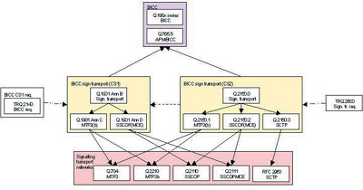當前網(wǎng)絡中的SS7信令的下3層采用MTP,而BICC和GCP定義了多種傳輸技術。圖3是BICC協(xié)議所支持的各種傳輸技術。