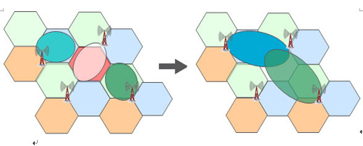 一旦出現(xiàn)退服,OSS會協(xié)調(diào)問題基站周邊基站的扇區(qū)來補償退服的無線覆蓋。如下圖,參與補償?shù)幕緯{(diào)整下行發(fā)射功率、天線傾角等來補償退服區(qū)域,甚至調(diào)低上行信號接收門限變相地擴大該扇區(qū)覆蓋以接入更多退服區(qū)域的終端。當(dāng)然,由于扇區(qū)的調(diào)整,會造成鄰區(qū)關(guān)系變化、切換邊界變化、干擾增加,這些就需要OSS提供的其他功能ANR、MRO、ICIC來聯(lián)合優(yōu)化。