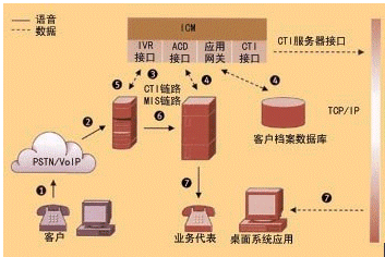 CTI (Computer Telephony Integration 計算機(jī)電信集成) 技術(shù)將計算機(jī)網(wǎng)和電話網(wǎng)連接在一起,把語音和數(shù)據(jù)服務(wù)集成為一體,使得構(gòu)造數(shù)據(jù)和語音的融合應(yīng)用得以實(shí)現(xiàn)。例如,由于CTI技術(shù)的引入,當(dāng)用戶來話時,呼叫中心能根據(jù)用戶的呼叫信息如ANI(主叫號)結(jié)合數(shù)據(jù)庫迅速地識別用戶,實(shí)現(xiàn)“彈屏”功能;當(dāng)電話轉(zhuǎn)接時,實(shí)現(xiàn)語音數(shù)據(jù)的同步轉(zhuǎn)移;根據(jù)所獲得的客戶信息及其他相關(guān)信息將來話路由到最適合服務(wù)的座席等。CTI技術(shù)包含了數(shù)據(jù)通信與語音通信兩大部分的內(nèi)容,關(guān)注的不僅僅是將基于計算機(jī)的智能技術(shù)運(yùn)用到電話的發(fā)送、接收及管理,還要考慮各種媒體類型的信息傳送,包括實(shí)時信號和非實(shí)時信號,如傳真、電子郵件和視頻信號等。