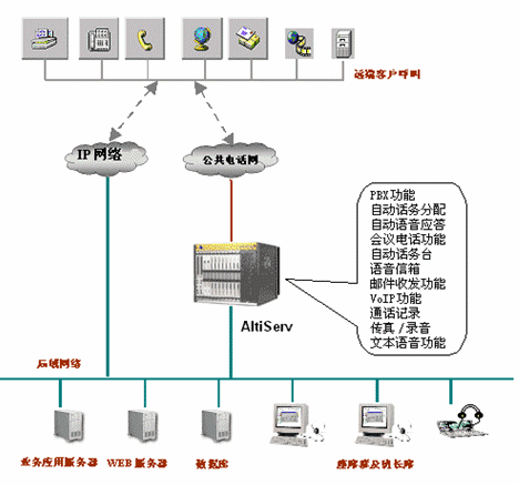 - 話務自動分配ACD功能:對撥入系統(tǒng)內(nèi)部的電話,可以選用撥入電話自動分配到員工的話機上,如對同一個業(yè)務功能相同的部門, AltiWare