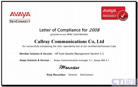 深圳市友鄰通訊設備有限公司的AP Suite呼叫中心質量管理系統(tǒng)經(jīng)過測試,通過了AVAYA DevConnect 的認證。