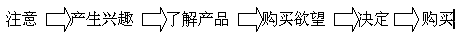 另外在其它的銷售渠道上,如電視、廣播、報紙等,他們對市場目標的準確度都是不高的,因為這樣的原因,也無法對目標市場作掌控和測試,雖然他們可以很快速的擴展市場,對市場產(chǎn)生很大的響應力,但如果沒有很好的市場營銷與品牌整體性和長期性規(guī)劃,也很快的會變成曇花一現(xiàn),歷史中的記憶,這些渠道的成本也是最高的,所以不是所有的企業(yè)都能一體適用的,尤其是中小型企業(yè)是無法長期負擔的。誠如在之前的文章里面分析所講的,最好的銷售效果是一拉一推的力量,用多媒體感官性及理性的獲取消費者的注意力,再配合快速效能的主動銷售,往往能將營銷的效果提升到最高的層面。將到這兒,就不得不順帶提到消費者購買的行為模式。我們將消費者對購買的心理和行為分為幾個階段: