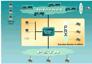 對于普通的傳真機,ExtraFax Router是更合算的選擇。它不僅不需要額外的網(wǎng)關(guān)設計,而且它還可以自動計算長途計費單。最重要的是它可以自動尋找最佳路徑 (即最節(jié)省的方式) 通過Internet/Intranet發(fā)送傳真,同時ExtraFax Router基于DID/DTMF/CSID/PORT/Channel的自動分發(fā)到個人的傳真信箱也降低了人工管理的費用并能實現(xiàn)傳真的安全性。