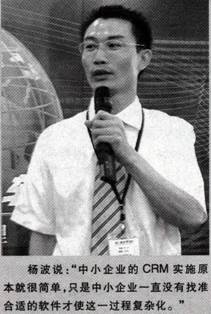 楊波說:“中小企業(yè)的CRM實施原本就很簡單,只是中小企業(yè)一直沒有找準合適的軟件才使這一過程復(fù)雜化。”