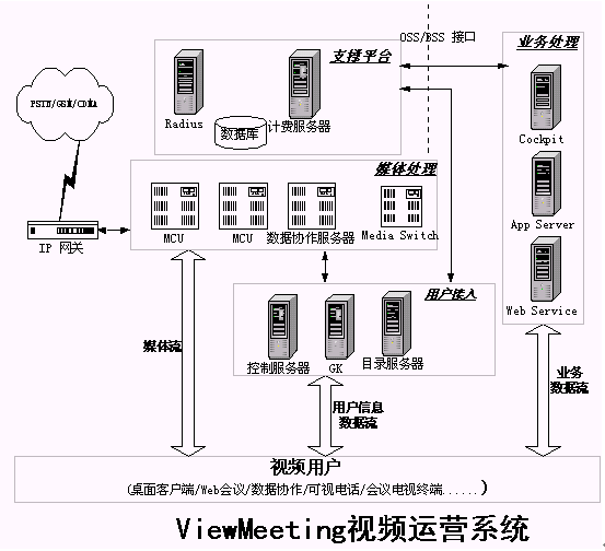 發(fā)展寬帶視頻業(yè)務(wù),提供寬帶視頻通信解決方案是優(yōu)視風(fēng)的宗旨,利用ViewMeeting平臺(tái)(如圖1所示),運(yùn)營(yíng)企業(yè)可以制定針對(duì)不同用戶(hù)需求的不同視頻業(yè)務(wù),使視頻業(yè)務(wù)能夠普及到更廣的用戶(hù)范圍中。