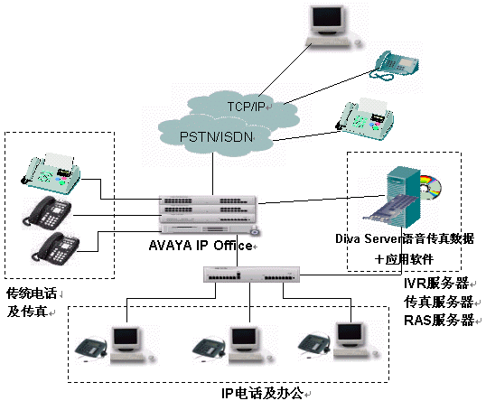 針對現(xiàn)代企業(yè)辦公通信的特點(diǎn)和要求,Avaya與Eicon經(jīng)過嚴(yán)格的產(chǎn)品互操作測試,及應(yīng)用調(diào)試共同推出了企業(yè)一體化辦公平臺解決方案,該解決方案整合了兩家公司的交換機(jī)、語音傳真板卡的各自優(yōu)勢,既可以應(yīng)用于傳統(tǒng)的網(wǎng)絡(luò)環(huán)境,又能應(yīng)用于純IP的通信環(huán)境,將不同的應(yīng)用技術(shù)和網(wǎng)絡(luò)結(jié)合起來,做到真正的辦公一體化。