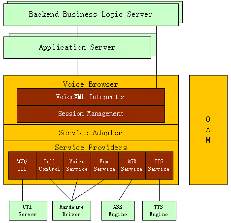 是語(yǔ)音平臺(tái)的核心組件之一,實(shí)現(xiàn)VoiceXML的解析和會(huì)話控制兩部分。