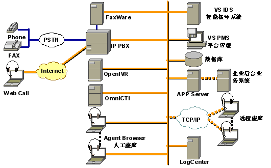 2.座席電話采用完全的軟電話技術(shù),利用座席PC機(jī)的聲卡就可以接聽電話或打電話,無需專門的語音電話線,PC機(jī)只要接到企業(yè)的局域網(wǎng)上就可以工作,可以進(jìn)行語音通信,大家節(jié)省了布線工作,座席可以靈活移動(dòng),只要計(jì)算機(jī)網(wǎng)絡(luò)到的地方就可以設(shè)立座席