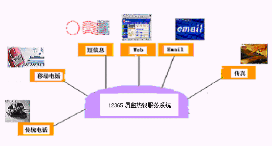 人民群眾利用電話、傳真、手機、電子郵件、因特網、短消息等撥打國家質量技術監(jiān)督局規(guī)定的統(tǒng)一特服號碼(12365)進入12365質監(jiān)熱線服務系統(tǒng),本系統(tǒng)依托質量技術監(jiān)督局各類業(yè)務技術支持系統(tǒng)和網絡系統(tǒng),通過人工受理或自動語音服務等方式全天24小時不間斷地為客戶提供各種服務。