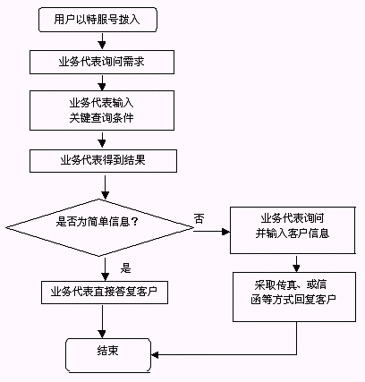 回訪形式主要是電話回訪,輔以信函回訪。在電話回訪無人接聽時,暫時將無人接聽作為回訪結(jié)果錄入檔案,再次對其回訪成功后,修改該回訪結(jié)果,如數(shù)次回訪后仍無人接聽,回訪結(jié)果即為無人接聽;卦L結(jié)果包括回訪的方式錄入檔案,如果服務(wù)未完成或用戶不滿意,將該檔案轉(zhuǎn)到投訴處理。