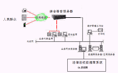 該系統(tǒng)的設(shè)計采用先進的三層CLIENT/SERVER網(wǎng)絡(luò)體系結(jié)構(gòu),集目前先進的計算機技術(shù)、通信技術(shù)、計算機電信集成(CTI)技術(shù)、多媒體呼叫接入技術(shù)、智能接入交換分配技術(shù)、數(shù)字語音處理技術(shù)、異構(gòu)系統(tǒng)信息交互技術(shù)、INTERNET網(wǎng)絡(luò)技術(shù)、安全容錯技術(shù)、網(wǎng)絡(luò)組網(wǎng)技術(shù)等于一體,并與地級市司法行政部門/法院已有技術(shù)支持系統(tǒng)(如MIS系統(tǒng)、法律法規(guī)數(shù)據(jù)庫系統(tǒng)等)緊密結(jié)合在一起,突破時空的限制,通過人工座席、自動語音/傳真、司法部門相關(guān)人員等為群眾提供電話、傳真、手機等多種服務(wù)形式的周到、快捷、全方位的法律服務(wù),為人民群眾與地級市司法行政部門/法院之間架起一座密切聯(lián)系的橋梁。