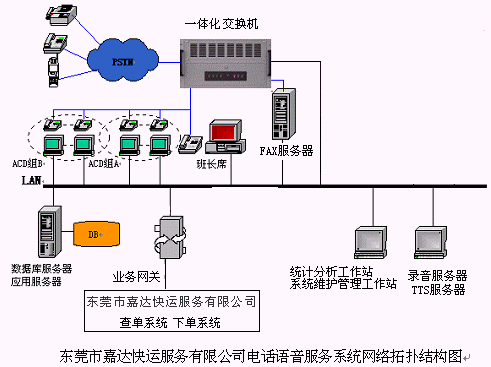 東莞市嘉達(dá)快運(yùn)服務(wù)有限公司電話語音服務(wù)系統(tǒng)一期工程和二期工程采用基于在呼叫中心領(lǐng)域獲得廣泛應(yīng)用的一體化交換機(jī)的呼叫中心建設(shè)方案,具有優(yōu)異的不斷升級和擴(kuò)展性能,分別于2003年12月20日和2004年4月17日順利上線投入運(yùn)行,大幅提高了老客戶的滿意度和忠誠度,為該企業(yè)創(chuàng)造了很好的經(jīng)濟(jì)效益和社會(huì)效益,大大的提高客戶服務(wù)質(zhì)量和響應(yīng)速度。