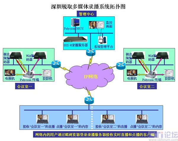 網(wǎng)絡(luò)內(nèi)的任意一臺計算機(jī)可通過IE瀏覽器直接登錄到管理中心的錄播服務(wù)器(需要管理員授權(quán)),可以接收實(shí)時的會議直播內(nèi)容,也可以對錄制好的文件進(jìn)行點(diǎn)播回放。