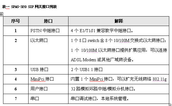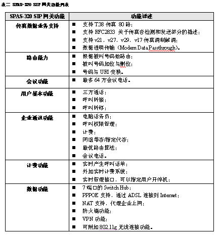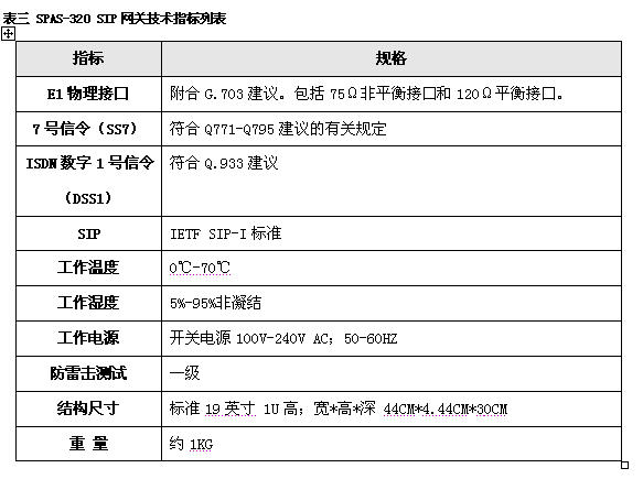 5.SPAS-320 VOIP網(wǎng)關技術指標