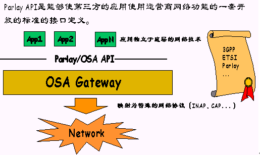 API和INAP、CAP等專用電信協(xié)議進(jìn)行映射最終在智能網(wǎng)上進(jìn)行業(yè)務(wù)執(zhí)行,達(dá)到最終NGN的業(yè)務(wù)開放程度,但業(yè)務(wù)的豐富性受到INAP等專用協(xié)議的限制。第二步,將SCP系統(tǒng)的軟件架構(gòu)向OSA體系進(jìn)行過渡,這個過程關(guān)鍵點在于保證業(yè)務(wù)用戶流程和業(yè)務(wù)數(shù)據(jù)的兼容性,最終,SCP的業(yè)務(wù)實現(xiàn)架構(gòu)將融合于Parlay