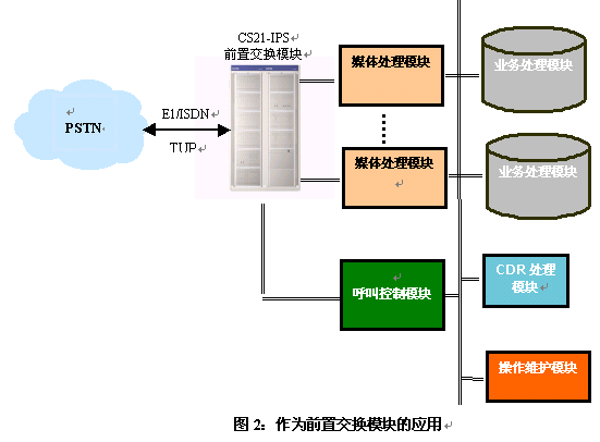 前置交換模塊:是一套可編程交換機,提供E1和10/100M Ethernet接口,支持SS7、ISDN、TUP等信令 。具有大容量交換網(wǎng)絡(luò)、信號音、語音資源、會議電話功能。