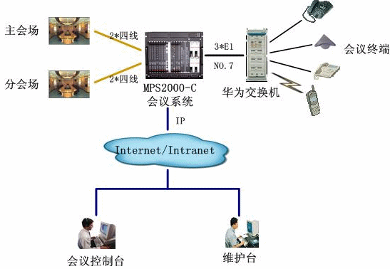廊坊電力公司在2006年新配置了一套華為視頻會議系統(tǒng),為滿足國家電網(wǎng)公司對會議系統(tǒng) “一主兩備”的要求,公司急需一套電話會議系統(tǒng)作為視頻會議系統(tǒng)的應(yīng)急備份。廊坊電力公司相關(guān)專家經(jīng)過多方認證,最終采用邁可行公司自主研發(fā)的MPS2000-C-II型交互式電話會議系統(tǒng)。