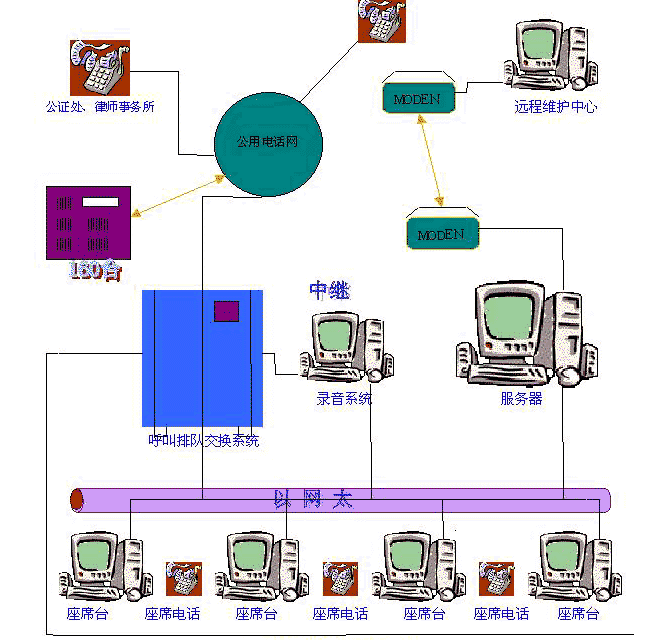 呼叫中心系統(tǒng)由用戶電話交換機(jī)、CTI服務(wù)器、IVR設(shè)備、應(yīng)用數(shù)據(jù)庫(kù)服務(wù)器、人工座席客戶機(jī)和電話終端等硬件設(shè)備和應(yīng)用軟件組成