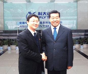 12月19日上午,中共中央政治局常委、全國(guó)政協(xié)主席賈慶林一行在安徽省委書記郭金龍、省長(zhǎng)王金山等省市領(lǐng)導(dǎo)陪同下來到國(guó)家863計(jì)劃成果產(chǎn)業(yè)化基地——科大訊飛公司視察,賈慶林主席對(duì)科大訊飛在中文語(yǔ)音技術(shù)和產(chǎn)業(yè)化方面的成績(jī)給予充分肯定。上午8時(shí)30分,賈主席一行抵達(dá)訊飛語(yǔ)音產(chǎn)業(yè)大樓。中國(guó)科技大學(xué)黨委書記郭傳杰、科大訊飛總裁劉慶峰博士、基地總工陳濤及基地工作人員熱烈歡迎賈主席的到來。