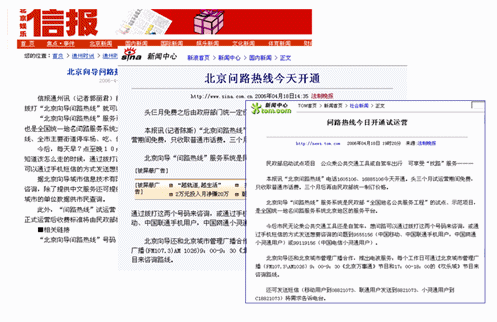 北京向?qū)峋經(jīng)過一個多月緊張的開通工作,終于于4月18號正式開通。新浪、網(wǎng)易、TOM等媒體爭相報道北京向?qū)У拈_通情況。