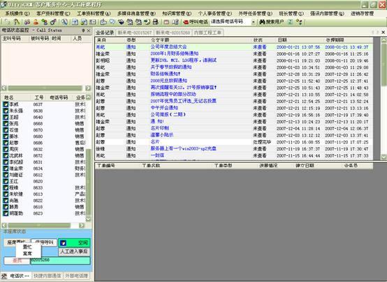 在個(gè)人事務(wù)管理中,坐席人員方便的設(shè)定工作計(jì)劃安排,查詢(xún)呼叫記錄(呼入、呼出、呼入失敗),收發(fā)個(gè)人Email、短信息、個(gè)人公文以及進(jìn)行公文流轉(zhuǎn)等。