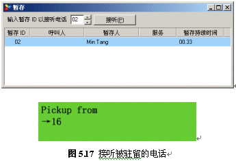 接通后,如果通話內容很緊急而又不方便在會議室進行溝通,此時,用戶可以按下話機上的“Park”按鈕,此時對方通話被導入到一段音樂(背景音中設定的音樂)。記住屏幕上提示的駐留號碼,即可掛機: