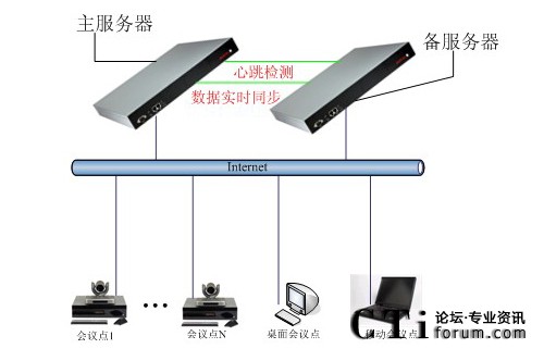 一般情況,服務(wù)器出現(xiàn)故障,如技術(shù)人員在現(xiàn)場(chǎng)的情況下,恢復(fù)服務(wù)器正常至少需要10分鐘、幾小時(shí)甚至更長(zhǎng)時(shí)間。從實(shí)際經(jīng)驗(yàn)上看,除非是簡(jiǎn)單地重啟服務(wù)器(可能隱患仍然存在),否則往往需要幾個(gè)小時(shí)以上。而如果技術(shù)人員不在現(xiàn)場(chǎng),則恢復(fù)服務(wù)的時(shí)間就更長(zhǎng)了。因此對(duì)于網(wǎng)絡(luò)視頻會(huì)議實(shí)時(shí)性來說,用戶是很難容忍這樣長(zhǎng)時(shí)間的服務(wù)中斷。為了有效的解決這個(gè)問題,華平率先推出AVCON TNC雙機(jī)熱備系統(tǒng)(Two-Node Cluster),避免長(zhǎng)時(shí)間的服務(wù)中斷,保證會(huì)議系統(tǒng)長(zhǎng)期、可靠的運(yùn)行,保障用戶重要會(huì)議的順利完整召開。