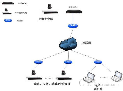 在系統(tǒng)的架設(shè)上,華平為上航特種車公司在雙線托管機房架設(shè)了一臺MCU服務(wù)器,用雙線機制解決電信、網(wǎng)通的網(wǎng)絡(luò)瓶頸問題,同時實現(xiàn)視音頻的合成和轉(zhuǎn)發(fā);在上海、南京、安徽、鐵嶺4個會議室各部署一臺標(biāo)清硬件終端,達(dá)到標(biāo)清品質(zhì)的視頻通訊應(yīng)用;同時針對移動參會用戶,華平為其配置了4個點的軟件客戶端,使上航特種車公司相關(guān)領(lǐng)導(dǎo)和員工在出差情況下也可以通過筆記本電腦參會。此系統(tǒng)設(shè)計不僅具備良好的視音頻通訊效果,同時還具備強大的數(shù)據(jù)輔助功能,可滿足會議、培訓(xùn)甚至是遠(yuǎn)程協(xié)作的應(yīng)用需求。