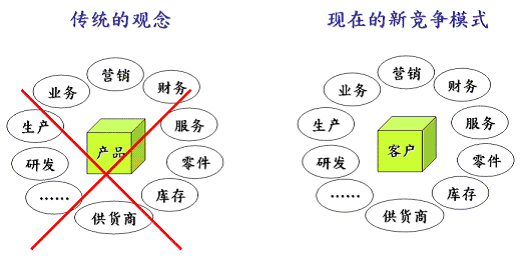 在CRM系統(tǒng)架構中,如何持續(xù)和客戶保持好關系、進而提高客滿意度是最主要目標之一,也是客戶關系管理架構的核心價值所在。現(xiàn)在企業(yè)的競爭模式已經(jīng)從以往以產品為中心的思考模式,轉變到以客戶為中心的思考模式。(如圖一)
