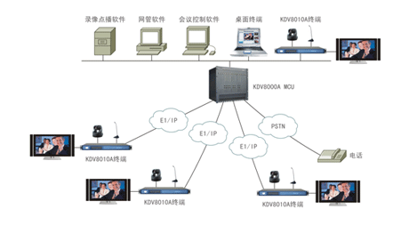 作為一款電信級(jí)MCU,KDV8000A具有強(qiáng)大的接入能力和豐富的功能模塊,可靈活應(yīng)用于各類視頻會(huì)議系統(tǒng)。下圖1是KDV8000A在節(jié)點(diǎn)數(shù)量多、網(wǎng)絡(luò)環(huán)境復(fù)雜的大型視頻會(huì)議系統(tǒng)中的典型應(yīng)用,下圖2是KDV8000A在衛(wèi)星視頻會(huì)議系統(tǒng)中的應(yīng)用,下圖3是KDV8000A在多級(jí)級(jí)聯(lián)系統(tǒng)中的應(yīng)用。