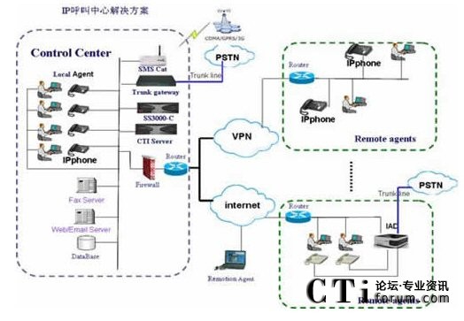 - 服務中心網(wǎng)絡化——充分利用IP話機的靈活移動和免費特點,服務中心的人工坐席可以靈活設置;