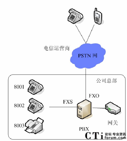 大多數(shù)公司目前都是使用PBX來提供電話業(yè)務的,PBX(小交換機)直接放置在在公司內部,對內直接布置分機,對外通過模擬中繼,與電信運營商的PSTN相連。