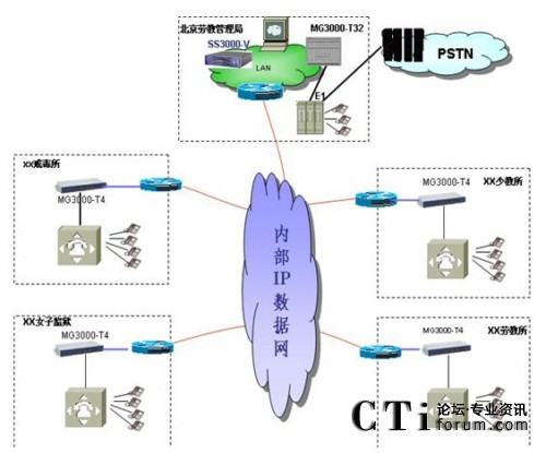 根據(jù)北京監(jiān)獄管理局情況大唐高鴻提出在監(jiān)獄系統(tǒng)現(xiàn)有的網(wǎng)絡(luò)建立IP語音系統(tǒng),使各地監(jiān)獄之間的語音服務(wù)運(yùn)營(yíng)在現(xiàn)有完善的IP網(wǎng)絡(luò)上,實(shí)現(xiàn)“語音、數(shù)據(jù)、視頻三網(wǎng)合一”的先進(jìn)網(wǎng)絡(luò)。