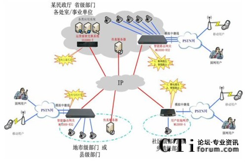 黑龍江省民政廳作為全省民政工作的首腦,管理著分布在全省13個地市、130個市縣、3080個社區(qū)和1964個鄉(xiāng)鎮(zhèn)組成的工作網(wǎng)。該工作網(wǎng)絡(luò)的節(jié)點共計近9000個點,日常信息溝通量不斷增加。目前,該工作網(wǎng)中各個工作點之間依然使用傳統(tǒng)的PSTN網(wǎng)絡(luò)進行日常工作的溝通,大大增加了民政廳的費用開支。目前民政廳已擁有自己的IP數(shù)據(jù)網(wǎng)絡(luò),因此結(jié)合全省民政部門的實際工作需要