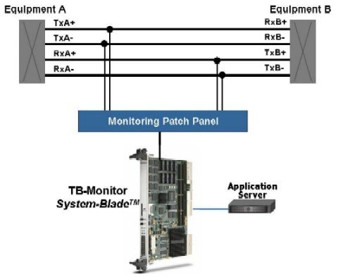 每個(gè)TB監(jiān)測(cè)系統(tǒng)刀片都配有64E1/T1的接收接口,可單向監(jiān)測(cè)多達(dá)64個(gè)E1/T1鏈路,或雙向監(jiān)測(cè)多達(dá)32個(gè)E1/T1鏈路。使用TelcoBridges的監(jiān)測(cè)接線面板,每條鏈路通過(guò)基于標(biāo)準(zhǔn)的高阻抗連接進(jìn)行探測(cè),實(shí)現(xiàn)非插入式網(wǎng)絡(luò)監(jiān)測(cè)。