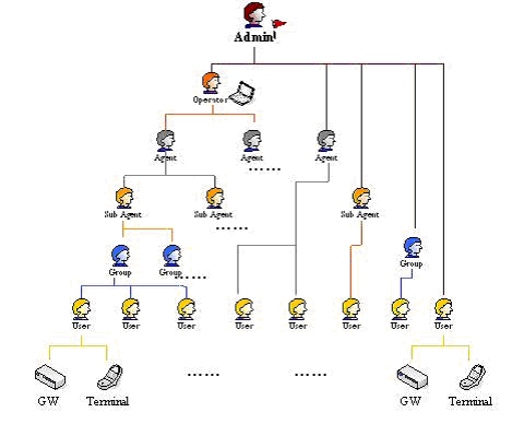 Admin為系統(tǒng)管理員,下有各個級別的賬號。除User外,其它均可視為各級代理。最低級別是User,只有在User下才能開啟終端設備賬號。