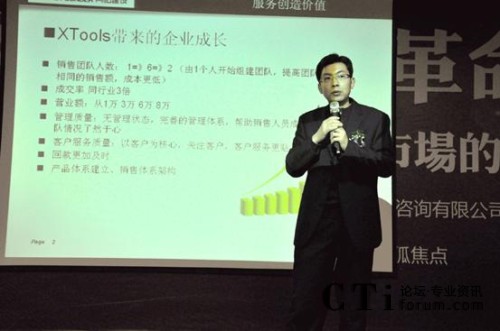 另外,濟南創(chuàng)弈工場總經(jīng)理趙小峰任曉峰與現(xiàn)場嘉賓分享了自身創(chuàng)業(yè)與成長過程。創(chuàng)弈工場科技有限公司成立于2008年,是由山東大學創(chuàng)業(yè)團隊發(fā)展而來的、以先進電子商務(wù)架構(gòu)和企業(yè)CI設(shè)計專家為目標的公司。趙總?cè)慰偸且晃?0后互聯(lián)網(wǎng)新銳,他表示:“公司運用XTools具有管理思想的系統(tǒng)幫助管理這支年輕的隊伍,使其健康發(fā)展,對于創(chuàng)業(yè)者來說,銷售體系的管理是至關(guān)重要的,這樣我們少走了彎路!