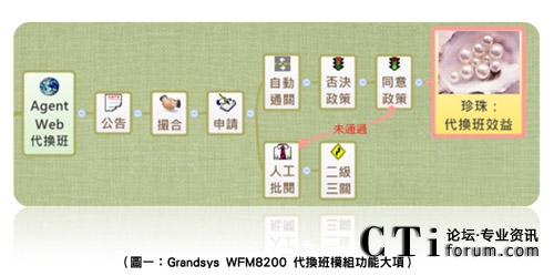 以Grandsys WFM8200為例,其所提供的班務管理模組,允許呼叫中心匯入Excel班表并提供主管以圖形拖拉調(diào)度班務,而客服人員可以瀏覽器,進行代換班之公告、撮合、申請,除了自動比對同意否決政策進行,自動通關(guān)的判斷以外,班組長或排班師也可進行人工批閱,可以說是呼叫中心入門的班務管理系統(tǒng)。