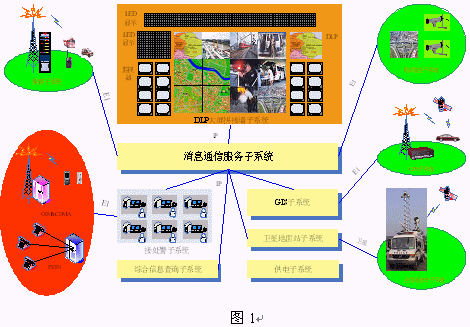 消息隊列服務(wù)器采用國際領(lǐng)先的計算機支持的協(xié)同技術(shù)進行設(shè)計開發(fā),實現(xiàn)三臺合一指揮調(diào)度系統(tǒng)眾多子系統(tǒng)間的無縫集成,包括數(shù)據(jù)流(包括信令)的集成、工作流的集成、應(yīng)用的集成、信息的集成、語音鏈路的集成。它是好易通科技三臺合一指揮調(diào)度系統(tǒng)所有子系統(tǒng)之間進行TCP/IP消息傳遞的中轉(zhuǎn)站,負(fù)責(zé)消息的分發(fā)和系統(tǒng)協(xié)同功能。它提供了接處警座席子系統(tǒng)、GIS警用地理信息子系統(tǒng)、集群通信系統(tǒng)、GPS衛(wèi)星定位子系統(tǒng)、視頻監(jiān)控子系統(tǒng)、大屏幕顯示子系統(tǒng)、應(yīng)急通信車子系統(tǒng)、綜合信息查詢子系統(tǒng)之間相互數(shù)據(jù)通信的接口,如圖1所示。