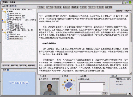 5、小何在分析機械行業(yè)的稅收情況,報告內容被同步共享到與會者的終端上,系統(tǒng)的數(shù)據(jù)文檔共享功能實現(xiàn)了無紙交流的夢想;