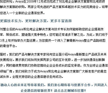 Avaya/Nortel整合產(chǎn)品線(xiàn)渠道招募會(huì)10城市 2010-03-16
