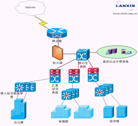 在此形勢下,解放軍后勤工程學(xué)院積極探索,尋求現(xiàn)代校園網(wǎng)建設(shè)的新出路。經(jīng)過對各種方案的收集整理,解放軍后勤工程學(xué)院與重慶電信達(dá)成共識,一起共謀現(xiàn)代校園網(wǎng)建設(shè)新模式:重慶電信負(fù)責(zé)提供網(wǎng)絡(luò)帶寬及軟硬件資源,依賴其深厚敦實的技術(shù)后盾及多年豐富的建網(wǎng)經(jīng)驗,攜手信利公司的藍(lán)信認(rèn)證計費系統(tǒng)為校方提供一套從硬件到軟件的完整解決方案,讓廣大師生能快捷方便地享受更加豐富的網(wǎng)絡(luò)服務(wù);而校方依據(jù)當(dāng)前網(wǎng)絡(luò)狀況,可以對使用用戶進(jìn)行行之有效的管理和維護(hù),徹底解決了校方之憂,開辟了當(dāng)前形勢下的新天地。