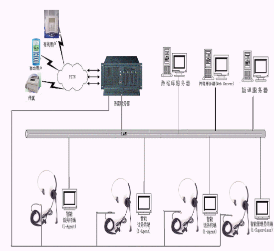 一類是基于傳統(tǒng)的PBX方式,為專用排隊機結(jié)構(gòu),該結(jié)構(gòu)基于自動話務(wù)分配,稱為交換機解決方案另一類是基于unPBX方式,為工控智能交換平臺結(jié)構(gòu),主要基于工控機和語音板卡,稱為工控機解決方案