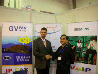 IPX與戰(zhàn)略合作伙伴Siemens配套IP終端話機(jī)。此次展會(huì),我們還推出了企業(yè)級(jí)新一代的IP傳真服務(wù)器GV-FAX,此次大會(huì)吸引了眾多全國的渠道代表、廠商、集成商和媒體參加,對(duì)產(chǎn)品感興趣的來賓絡(luò)繹不絕。